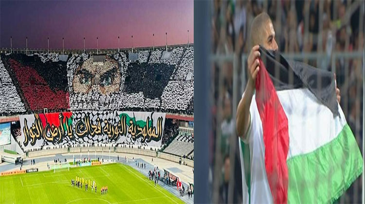 سليماني ينوب عن الجزائريين بتحية فلسطين…جماهير المولودية العاصمية تتفاخر بثبات غزة