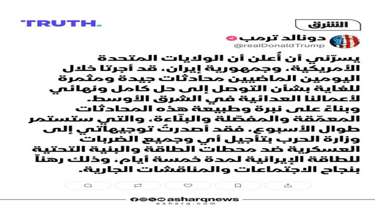 تصرفه يلمح لحماية إسرائيل…ترامب يغرد حول السلام مجددا مع إيران