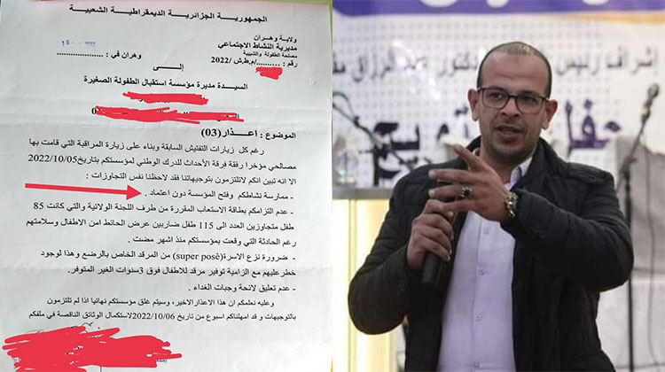 2022-12-20 عقب تهديد أحد النافدين لرئيس لجنة الصحة بوهران…الوالي سعيد سعيود يأمر بالغلق الفوري لروضة تنشط فوق القانون